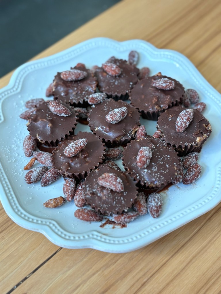 They taste like a candy bar but are made with clean ingredients — almond butter, dark chocolate, and a little honey for sweetness. They’re no-bake, freezer-friendly, and totally “mom-approved.” Bonus: they look so good in photos, which makes them perfect for your 19th hole snack or a blog-worthy treat.